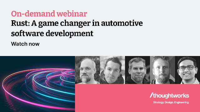 Discover how Rust is revolutionizing automotive software development in this webinar featuring industry experts from Thoughtworks, CARIAD (...more